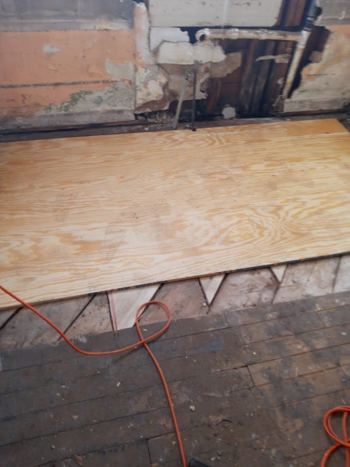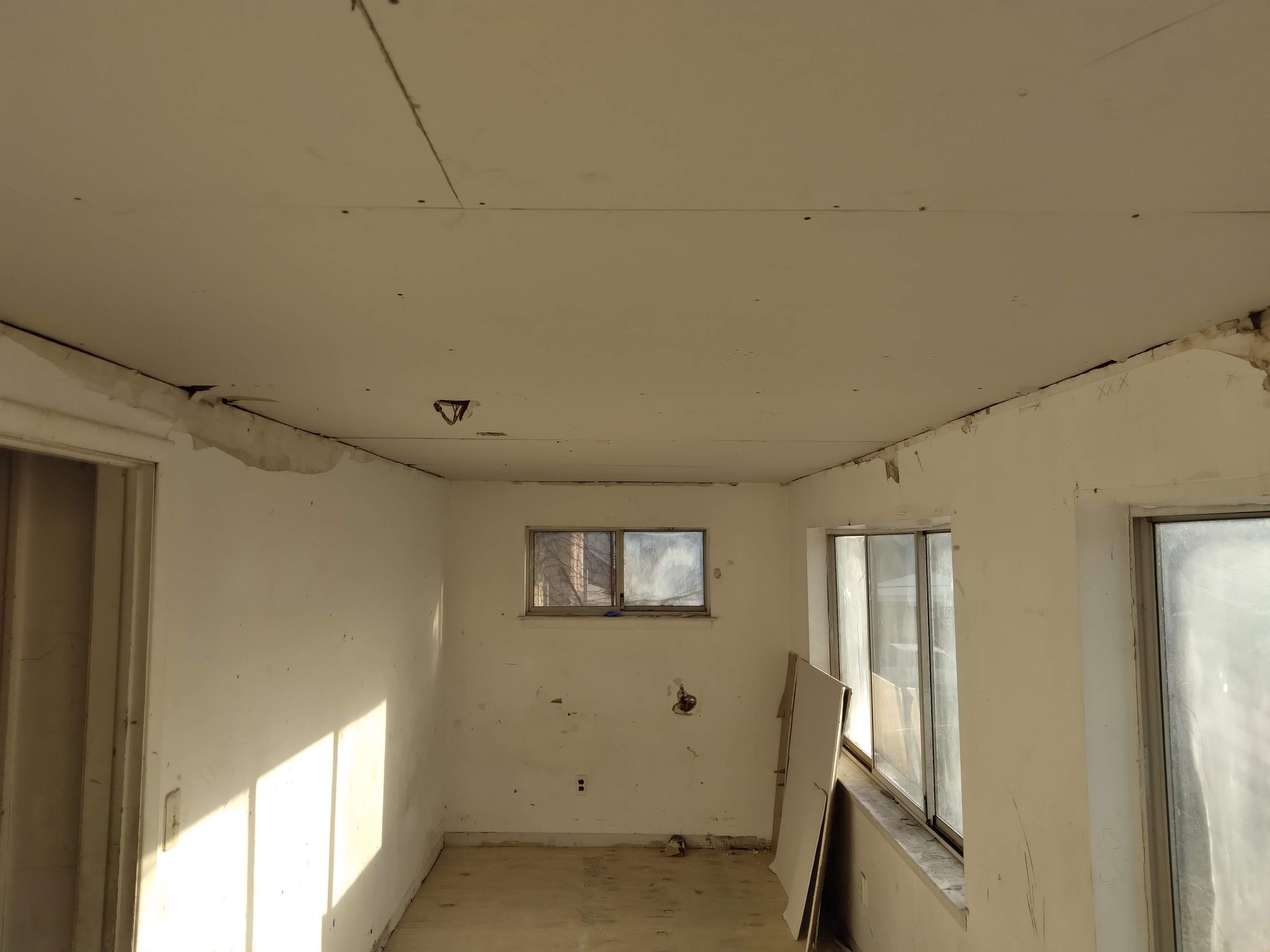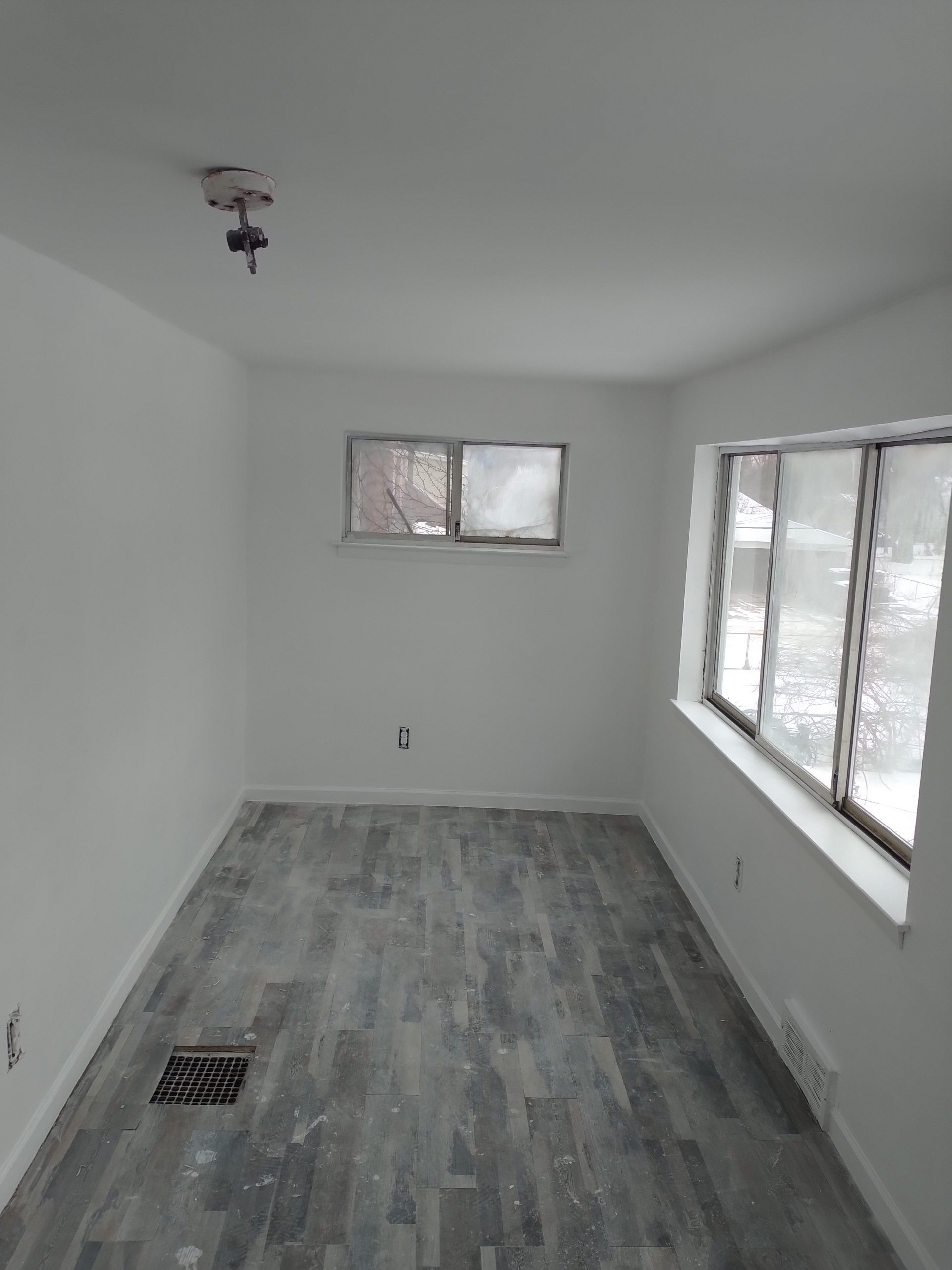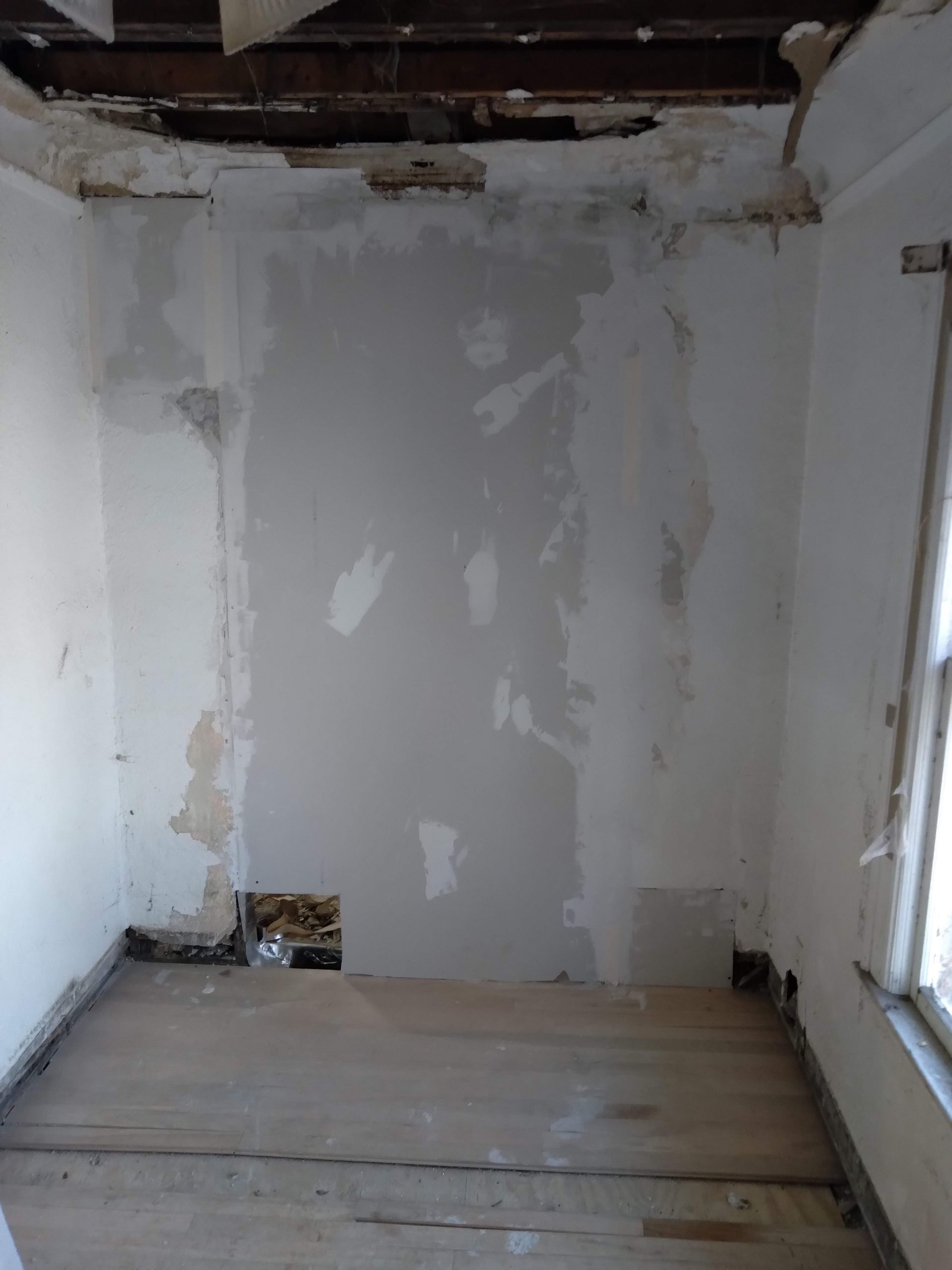 AFTER MUDDED AND PAINTED WITH NEW FLOORING